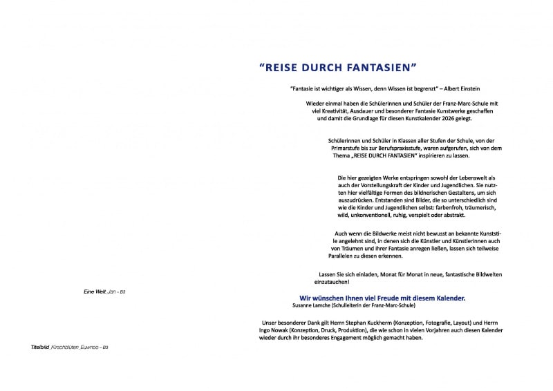 mit dem Kunst-Kalender der Franz-Marc-Schule für das Jahr 2026