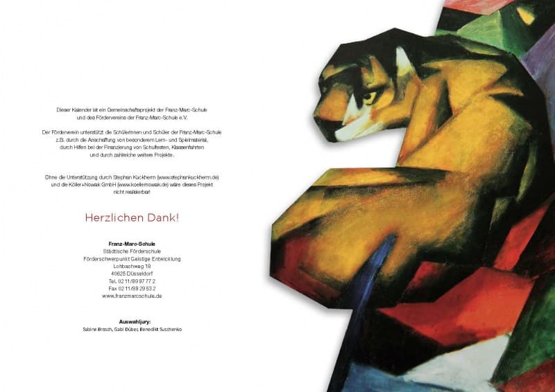 Der Erlös des Kalenderverkaufs kommt dem Förderverein der Franz-Marc-Schule zugute, so dass dieser auch weiterhin unsere Schüler:innen finanziell unterstützen und besondere Schulprojekte, Lernmaterialien und Ausstattungen ermöglichen kann.